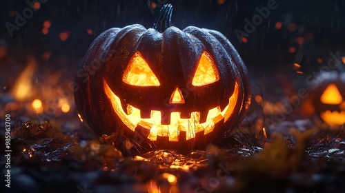 Halloween jack-o-lantern glowing face in the darkness