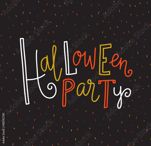 Halloween lettering greeting card - Halloween party. Vector holiday background. Hand drawn stylish illustration with bright text.