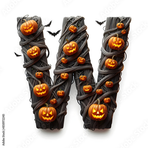 Halloween Letters, Letter W, Halloween alphabet, Halloween Word Art, Isolated on a white background