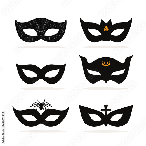 Halloween Masquerade Mask isolated in White background, silhouette Set, Halloween theme, Vector illustration