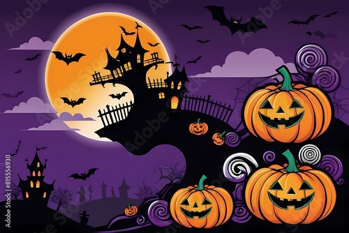 halloween, night, background, pumpkin, bat, illustration, skittish, creepy, scarey, dark, holiday, october, ghostly, haunted, eerie, autumn, moonlight, design, graphic, vector, moon, jack-o-lantern, black, orange, silhouette, magic, sorcerer, celebration, fantasy, horror, atmosphere, full moon, mysterious, ghoulish, spectral, grisly, midnight, festive, seasonal, cartoon, tree, house, bat, castle, fear