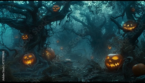 Halloween Night in the Woods A Spooky Adventure Generative AI