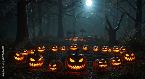 Halloween Night Pumpkins in the Woods Under a Bright Full Moon Spooky