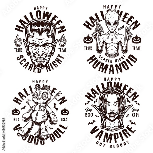 Halloween party monochrome vintage logos