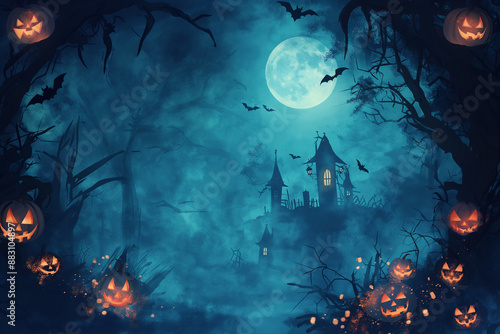 halloween, nature, silhouette, art, sorcerer, plant, tree, moon, autumn, sky, scarey, dark, illustration, night, forest, bat, castle, horror, vector, landscape, summer, cartoon, holiday, design, season