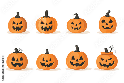 halloween, pumpkin, autumn, orange, holiday, lantern, face, horror, october, scarey, jack, evil, vector, decoration, illustration, vegetable, celebration, skittish, symbol, set, jack-o-lantern, season, icon, food, smile