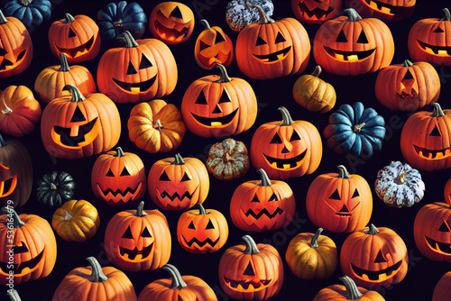 Halloween Pumpkins. Carved faces on orange pumpkins