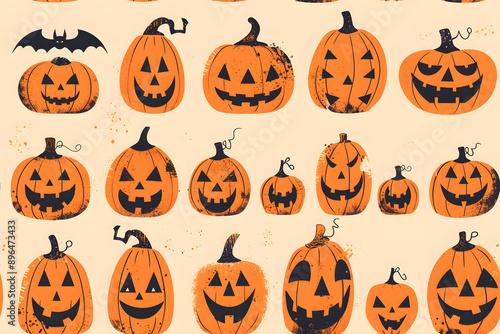 halloween, seamless, pattern, background, repeating, continuous, tile, illustration, design, decoration, art, abstract, graphic, wallpaper, pumpkin, horror, night, celebration, skittish, october, holiday, spider, bat, dark, autumn, ghost, orange, black, creepy, trick, treat, sorcerer, skull, silhouette, concept