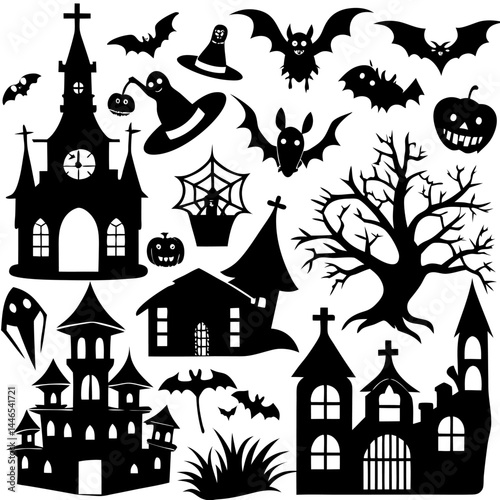 halloween, silhouette, skittish, ghost, sorcerer, bat, pumpkin, jack-o-lantern, tree, grave, gravestone, cross, skeleton, spider, spider's web, scarey, creepy, black cat, monster, eerie, night, horror, dark, shadow, trick or treat, october, autumn, dead tree, cemetery