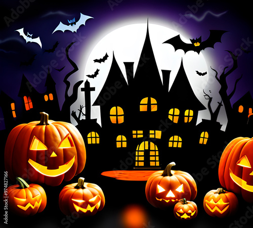 Halloween theme pumpkin night holiday Microchiroptera ghosts