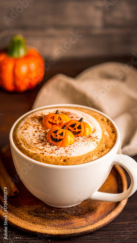 cappuccino, pumpkin, halloween, cup, hot drink, drink, cafes, beverage, caffeine
