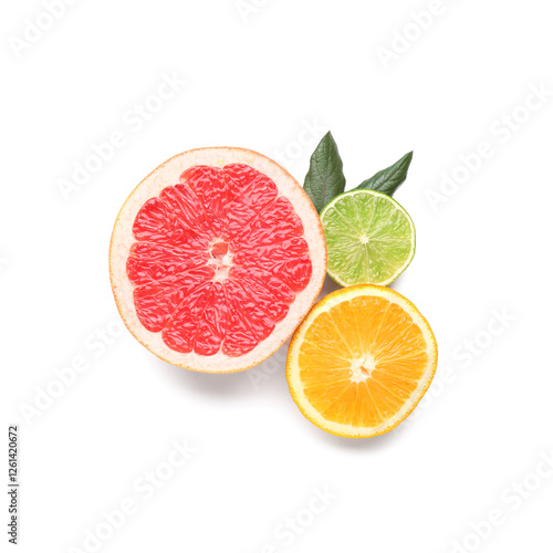 citrous, different, fruit, half, leaf, white, antioxidant, background, colours, cut, delicious, dessert, eat, eating, exotic, flat, food, fresh, freshness, fruit, grapefruit, health, healthy, isolated, juice, juicy, lay, lime, natural, nature, nobody, object, orange, organic, raw, refreshing, ripe, sour, sweet, taste, tasty, top, tropical, vegetarian, view, vitamin, vitamin