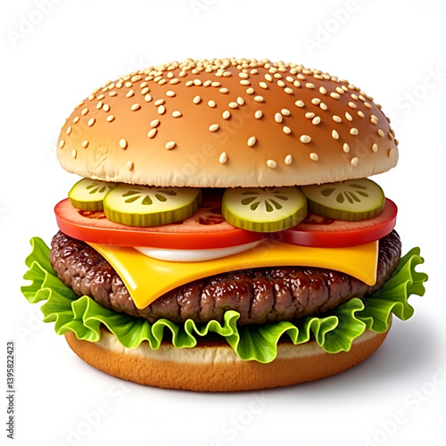 hamburger, burger, food, sandwich, cheeseburger, cheese, beef, isolated, bread, bun, fast, tomatoes, lettuce, meal, meat, white, lunch, snack, sesame, fat, salad, grilled, onion, delicious, vegetable