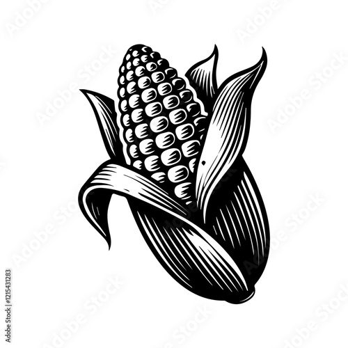 hand draw black and white corn illustration, vintage corn illustration .