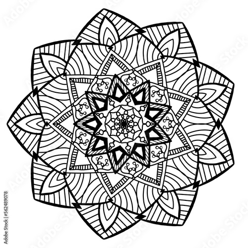 Hand drawing flower Mandala pattern. Black and white color. For henna tattoo, coloring book, design ingredients, decorative