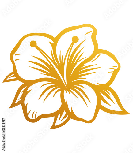 Hand drawn azalea flower . Sketch of azalea flower with leaves and stem . golden vintage etching vector botanical isolated on transparent. Illustration of botany floral plant, PNG and SVG