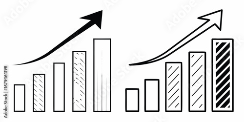 growth, bar chart, arrow, increase, progress, business, finance, datum, statistic, concept, illustration, drawing, hand-drawn, vignetting, white background, isolated, success, improvement, performance, economy, analysis, report, chart, diagram, up, rising, positive, gain, profit, investment, revenue, market, strategy, planning, development, trend, vector, simple, icon, design, visual, presentation, document