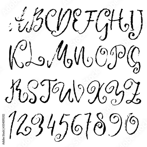 Hand drawn curly display font made by dry brush. Grunge style retro alphabet