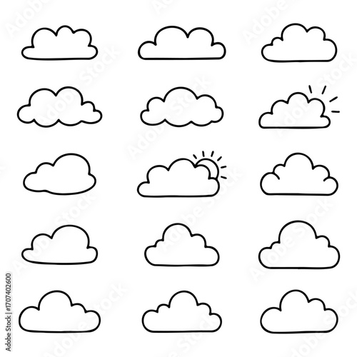 Hand drawn doodle cloud icons collection with weather and sky elements