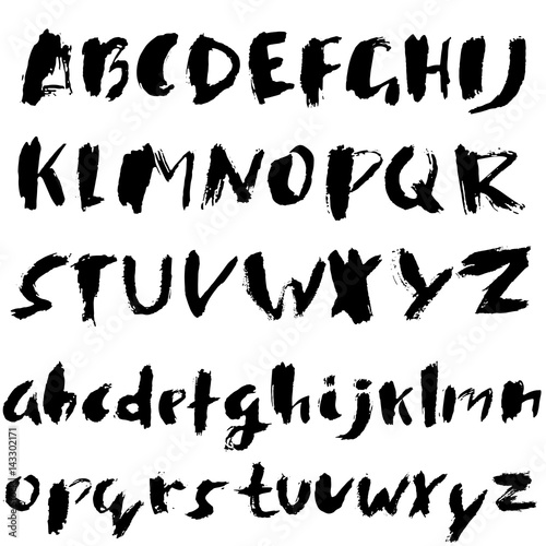 Hand drawn dry brush font. Modern brush lettering. Grunge style alphabet. Vector illustration.