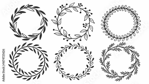 Hand Drawn Leaf Wreaths Set Botanical Frames Collection Simple Elegant Floral Design Elements for Wedding Invitations