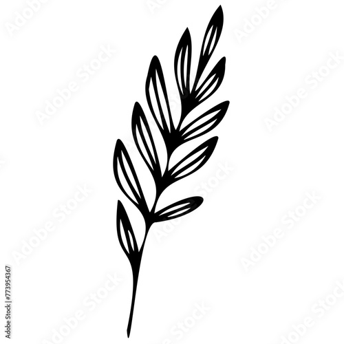 Hand drawn leaves line linear black Strock Symbol visual illustration Plant nature hand drawn set. Collection botanical element. Elegante vintage style