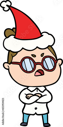 hand drawn line drawing of a annoyed woman wearing santa hat