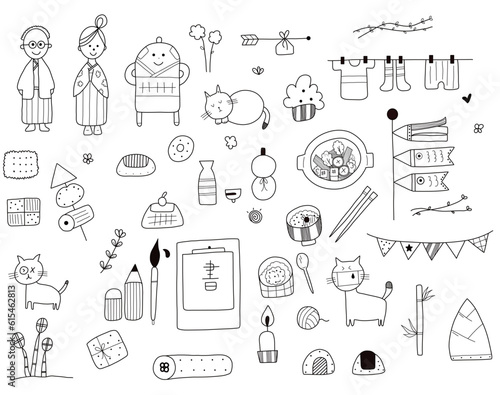 Hand drawn of Japanese cute set on white background. Vector illustration design.