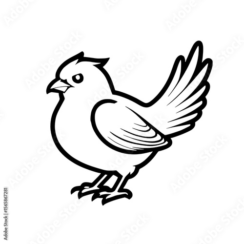 hand drawn outline black and white bird.