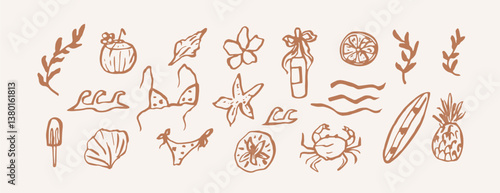 Hand drawn retro coastal summer vacation elements