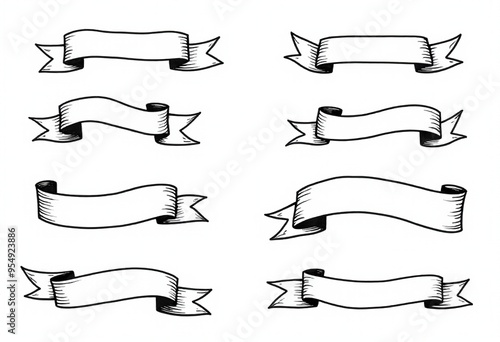 Hand Drawn Ribbon Banners | Transparent Background | Digital Scrapbooking