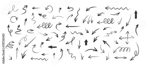 Hand drawn set crayon arrows. Doodle vector collection on white background.