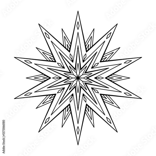 Hand drawn silhouette of star, sunburst, light ray. Bohemian symbol bursting sun ray. Magic ornate talisman, antique style, boho, tattoo, logo. Vector illustration isolated on white background