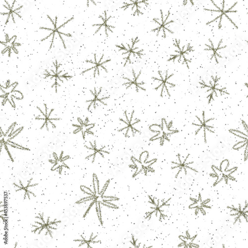 Hand Drawn Snowflakes Christmas Seamless Pattern. Subtle Flying Snow Flakes on chalk snowflakes Background. Amazing chalk handdrawn snow overlay. Stylish holiday season decoration.