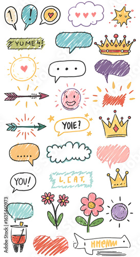Hand Drawn Speech Bubbles Icons And Emoticons Set Isolated Illustration