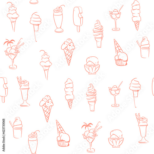 Hand drawn vector abstract graphic ice cream cone ,sundae line art illustrations seamless pattern.Ice cream dessert vector illustration design concept art. Sweet dessert cute doodle summer pattern.