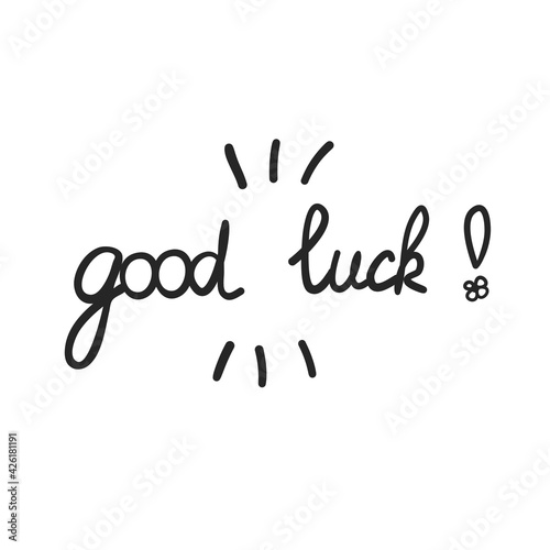 Hand drawn vector illustration with lettering «good luck ". Motivational Poster. The concept of quarantine and stay at home.