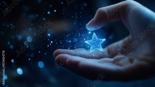 hand, star, glow, blue, light, sparkle, magic, night, dark, galaxy, cosmic, universe, dream, hope, wish, future, success, achievement, power, energy, potential, opportunity, innovation, creativity, inspiration, technology, digital, abstract, concept, design, element, background, texture, illustration, graphic, image, photo, art, beauty, wonder, mystery, fantasy, aethereal, celestial, bright, shine, particle