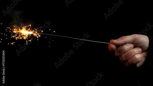 Hand Holding a Lit Sparkler at Night – Transparent Background Celebration Illustration