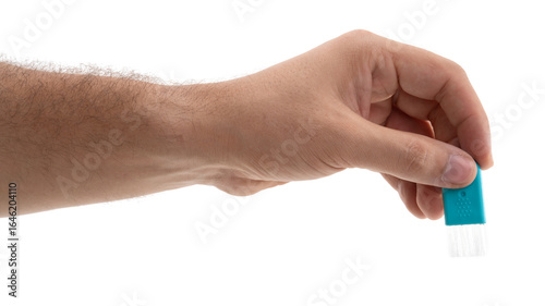hand, turquoise, object, closeup, simplicity, utility, casual attire, personal, holding, sharpened, background, detail, grasping, common, texture, colours, light, design, accessory, tool, storage, material, flat, item, usage, clarity, warm tones, focused, horizontal, contemporary, modern, cosmetic, precision, functionality