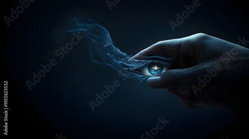 hand, eye, palm, light, glow, smoke, darkness, mysterious, blue, surreal, aethereal, creativity, art, vision, perception, fantasy, intrigue, nature, energy, illumination, magic, dream, concept, artistic, emotion, human, soft, detail, sharpened, graphic, scene, background, form, shape, imagery, mist, expression, wonder, style, unique, design, mystical, ambient, contrast, symbol, beauty, attracted, attraction, surrealism
