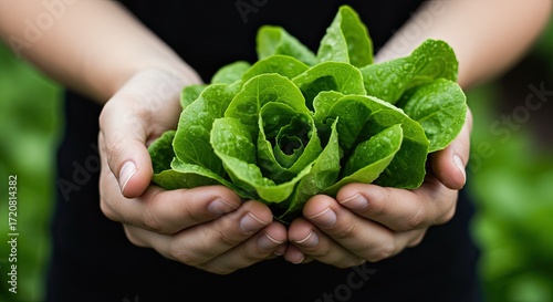 hand holding fresh green lettuce leaves