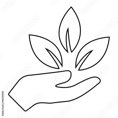 Hand holding Leaves Leaf Vector. Black and white. White background. Line drawing.