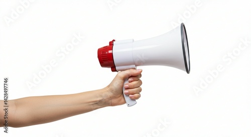 megaphone, hand, white, background, press, isolated, announcement, communication, speaker, sound, noise, voice, alert, shout, message, protest, broadcast, media, advertising, publicity, news, promotion, call, loud, volume, warning, speech, holding, human, object, tool, device, technology, equipment, person, grip, closeup, signal, presentation, isolated on white, white background, attention, marketing, information, amplifier, direction, gesture, hand-held, statement