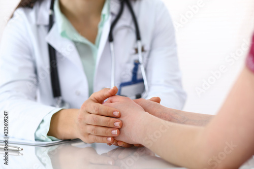 medicine, doctor, patient, reassuring, closeup, hand, help, holding, comforting, medicals, explain, negotiate, trust, ethic, concept, woman, doc, exam, stethoscope, application form, uniform, hospital, female, medic, human, clinical, physician, health, care, profession, adviser, practitioner, occupation, people, caucasian, specialist, employee, consulting, complaint, insurance, support, kindness, touching