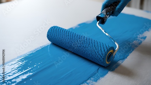 painting, roller, paint, blue, colours, wall, surface, bricolage, renovation, home, improvement, craft, art, creation, design, interior, decoration, texture, stroke, brush, tool, equipment, hand, glove, men at work