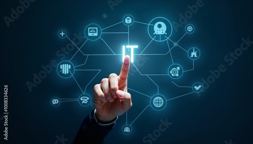 Hand Pointing at a Glowing IT Icon Emphasizing the Importance of Information Technology in Today's Digital Age