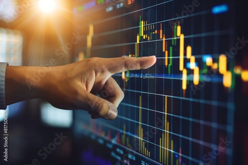 hand, pointing, graph, chart, computer-screen, information, business, presentation, analysis, statistic, trend, growth, decayed, monitor, technology, digital, software, touch screen, electronic, office, work, meeting