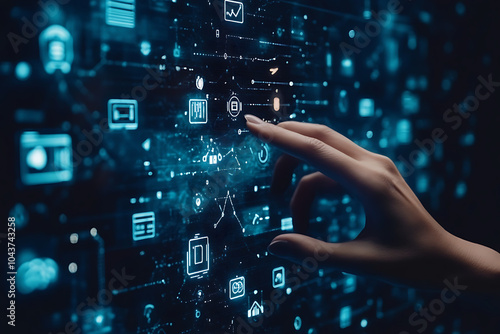 hand, technology, business, touch, buttons, computer, digital, screen, concept, touch screen, finger, interface, future, virtual, communication, software, network, cyberspace, media, tech, innovation, press, push, connection, display