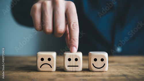 hand, smiley, face, wooden, cube, block, happy, selection, emotion, feedback, rating, choice, client, satisfaction, concept, positive, expression, wood, surface, closeup, service, decision, feeling, quality, mood, review, symbol, happiness